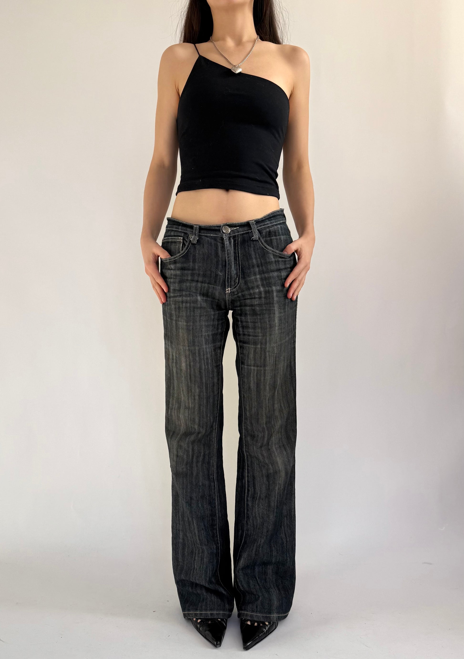 Y2K dark wash low rise wide leg jeans by SEXSO