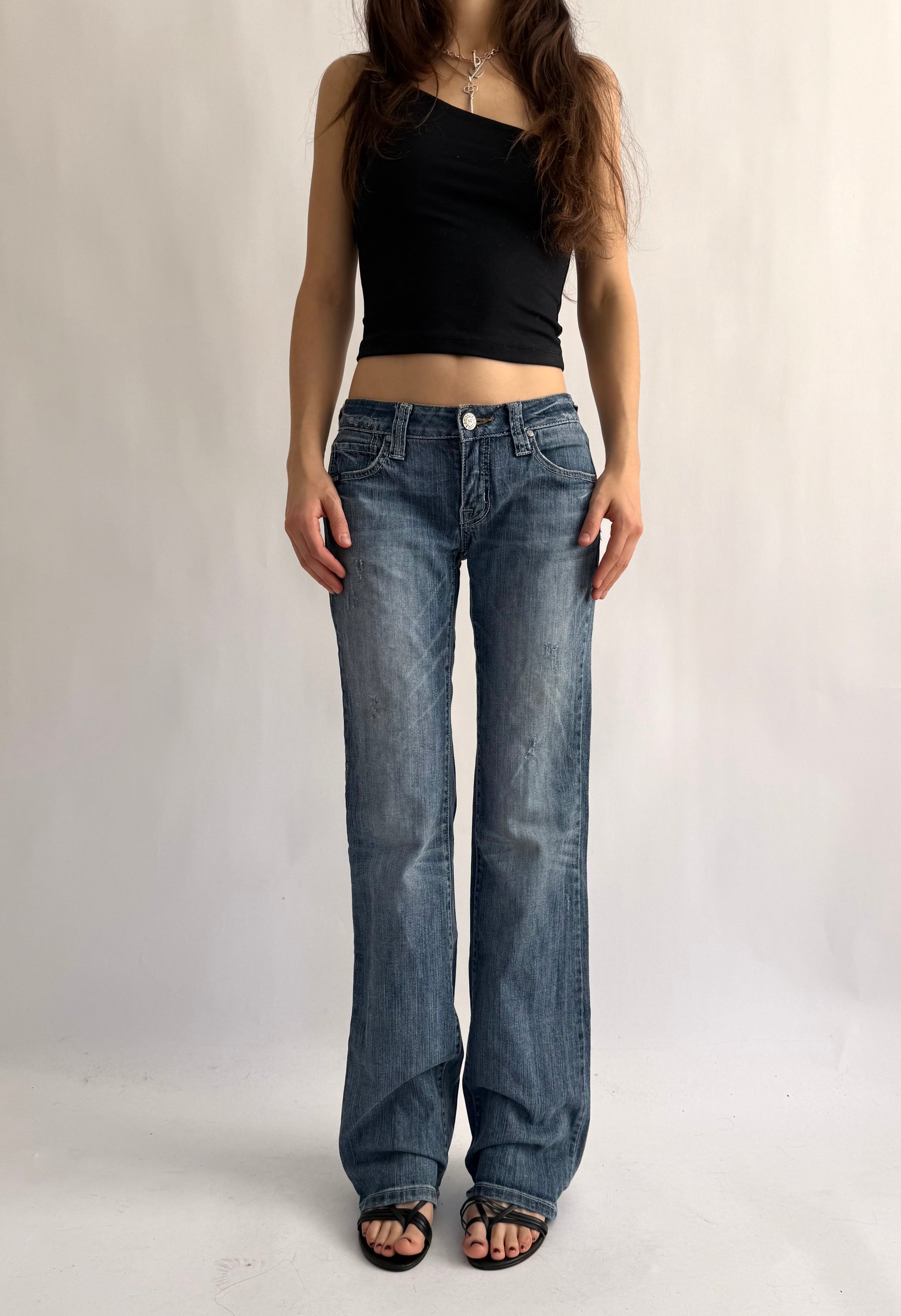 Y2K vintage low rise flared pants with back pocket details grunge core