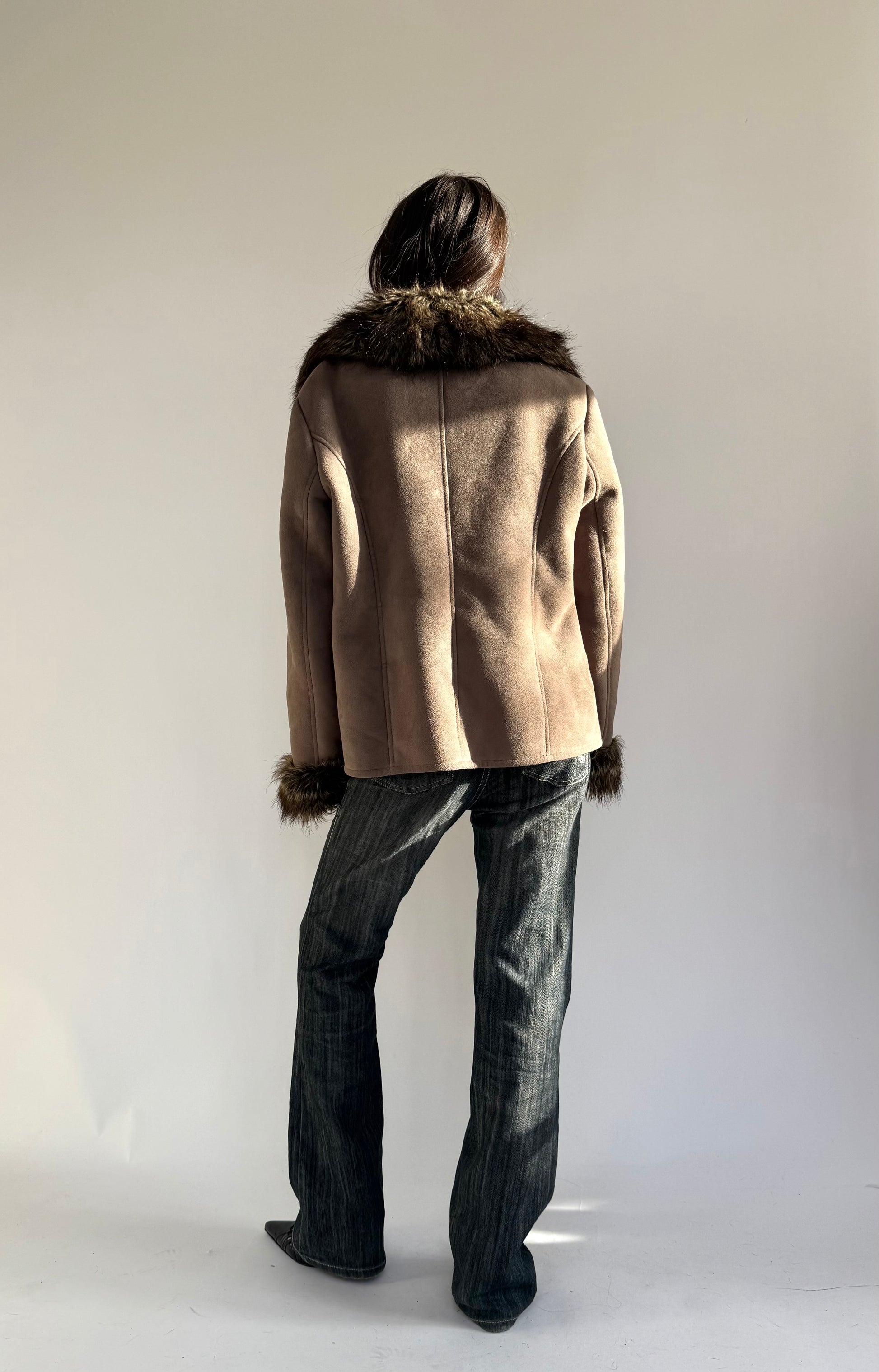 Y2K faux fur lined jacket with toggle fastening
