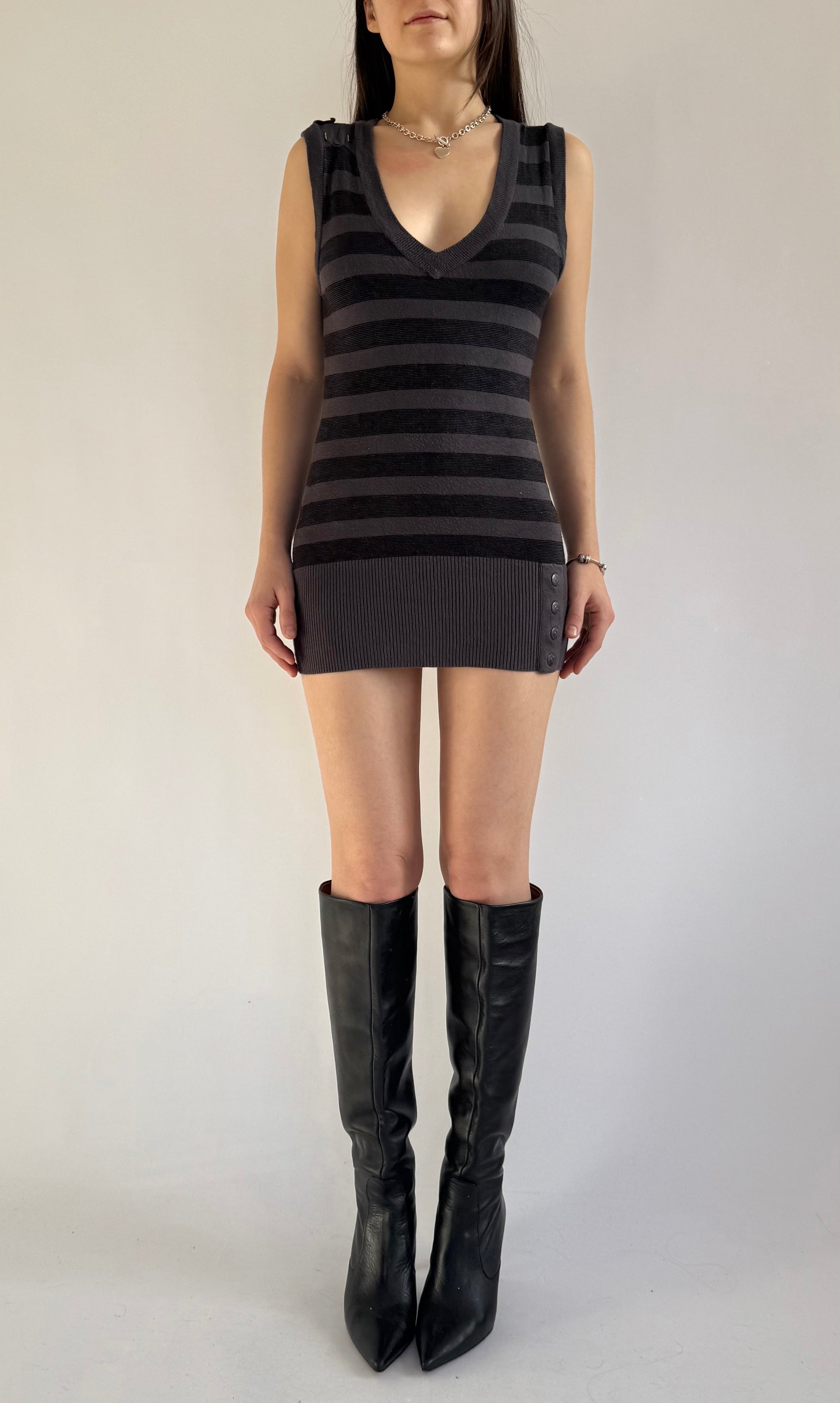 Y2k grunge core black and grey striped mini dress