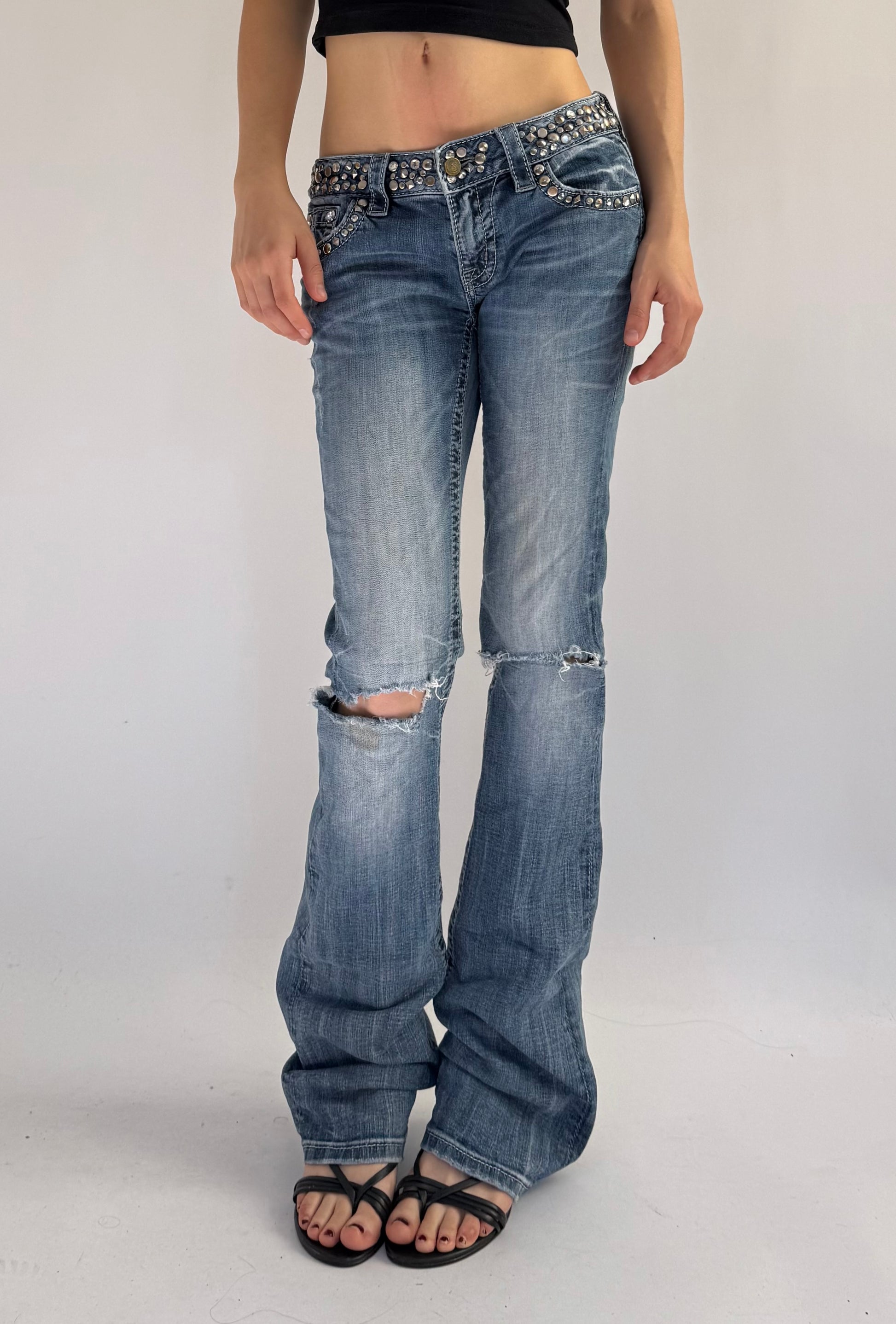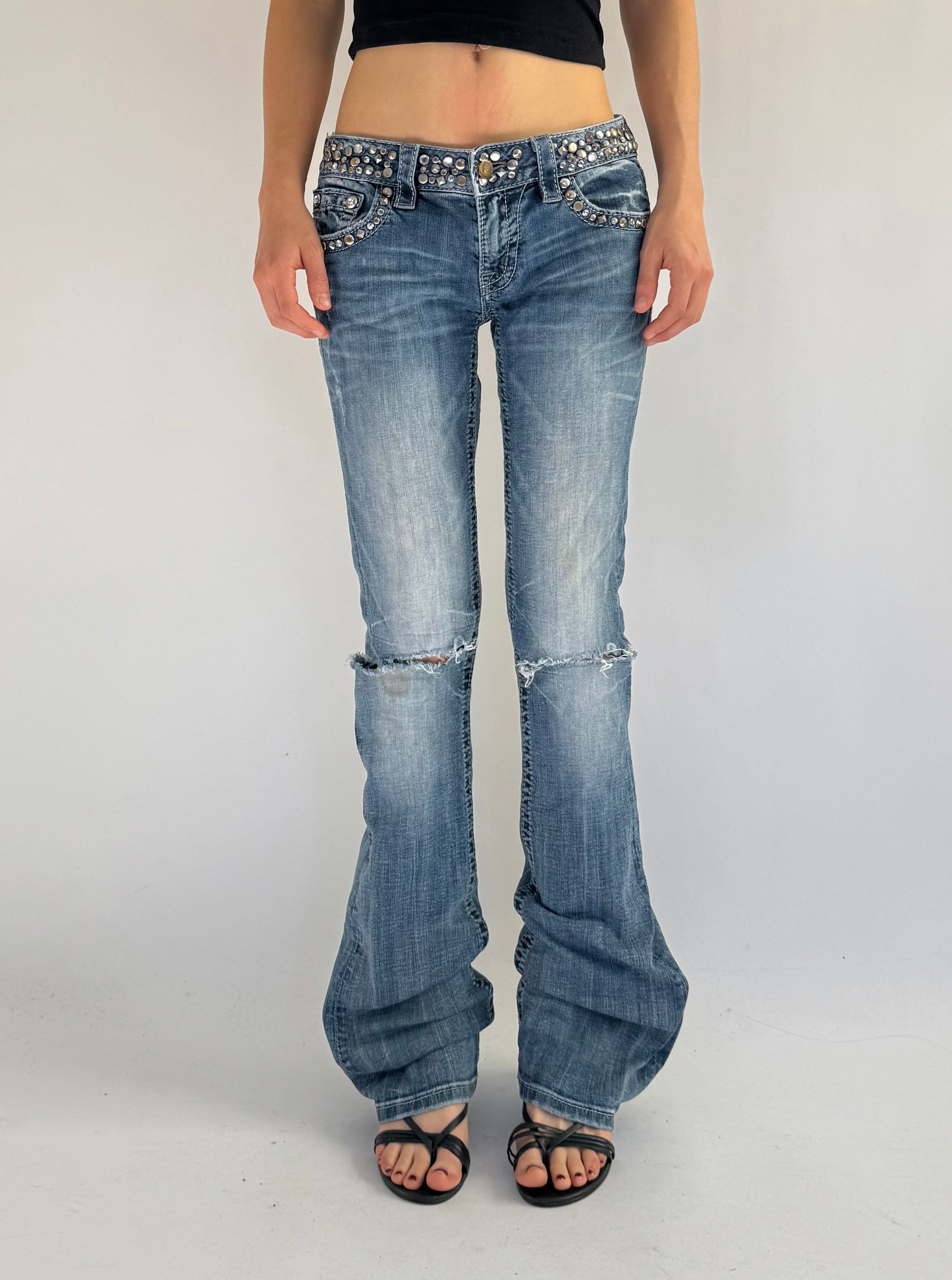 Y2K insane low rise MISS ME bedazzled flared jeans